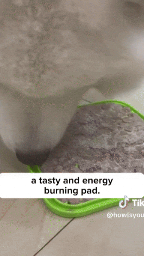 You can use peanut butter (xylitol-free), yogurt, wet dog food, pumpkin puree, or any spreadable dog-safe treat. The textured surface helps hold treats in place longer.